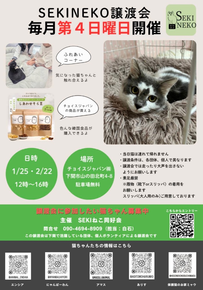 また、譲渡に関しての詳細やご質問などもボランティアスタッフがご説明致します。